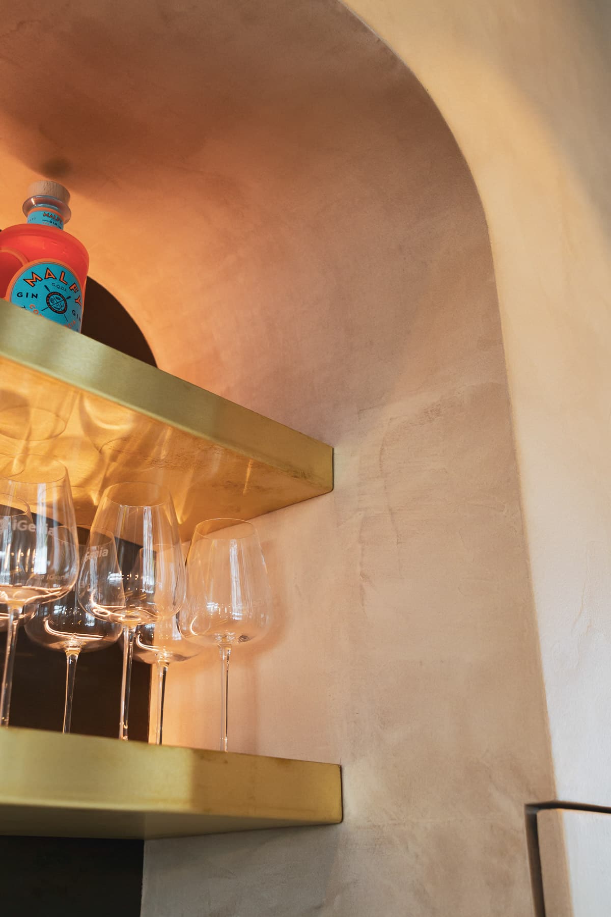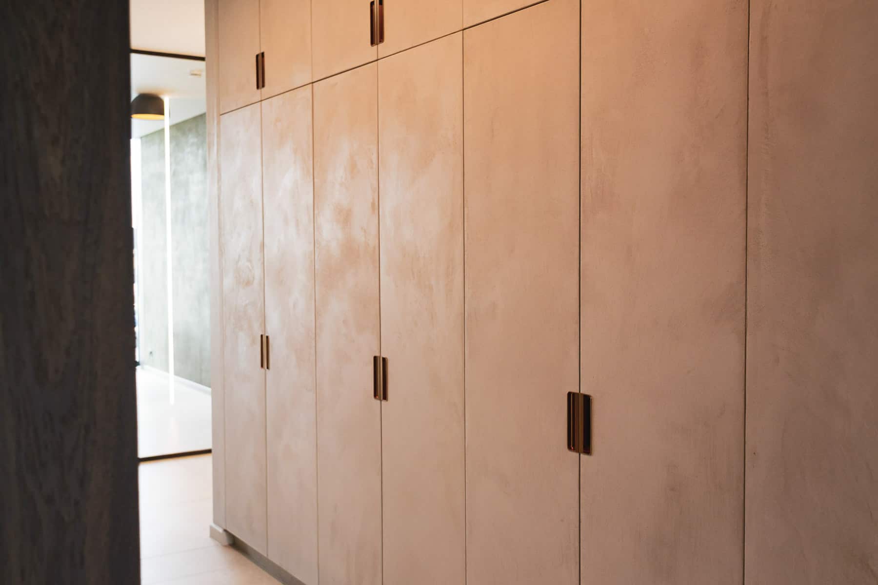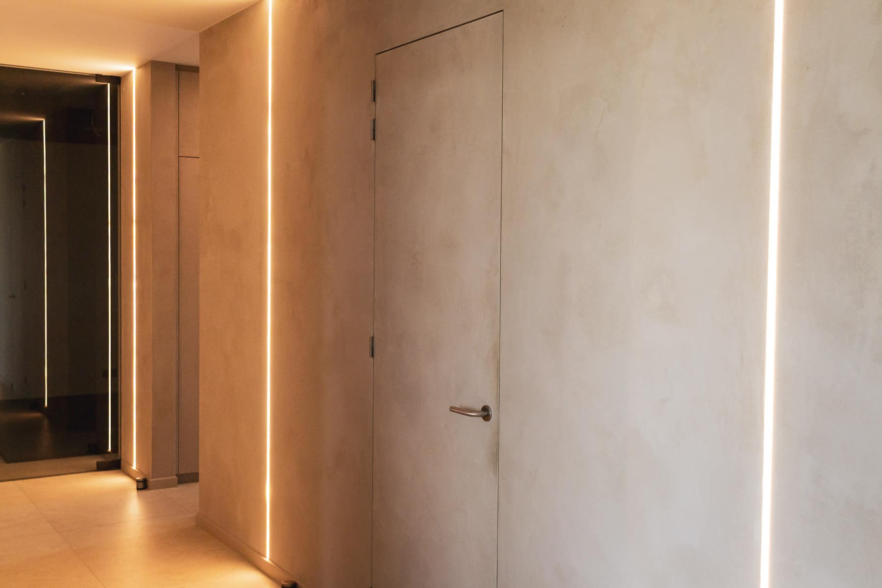 Strakke witte pilaar met natuurlijke pleisterstructuur - moderne interieurafwerking door In't Wit schilderwerken