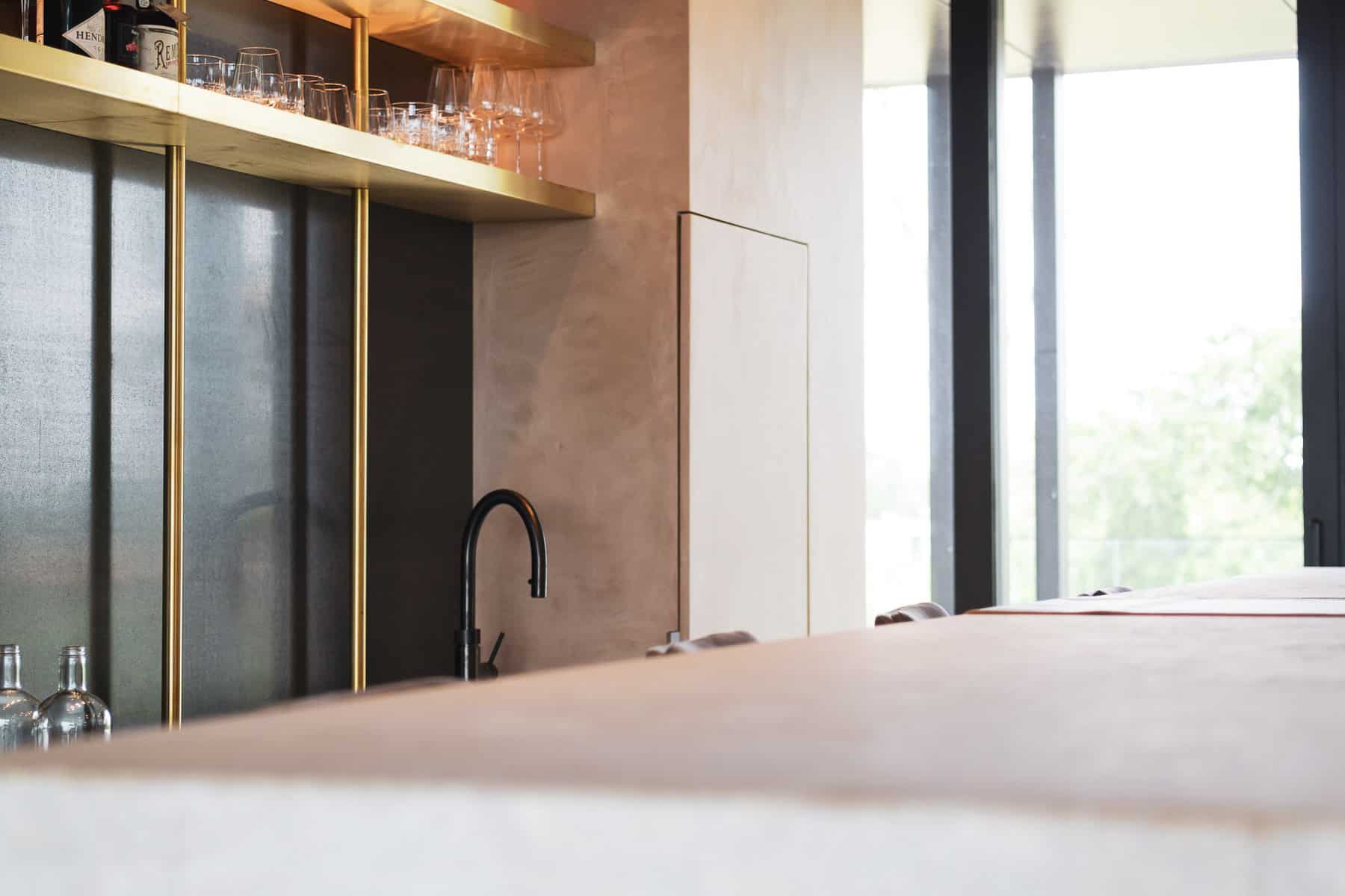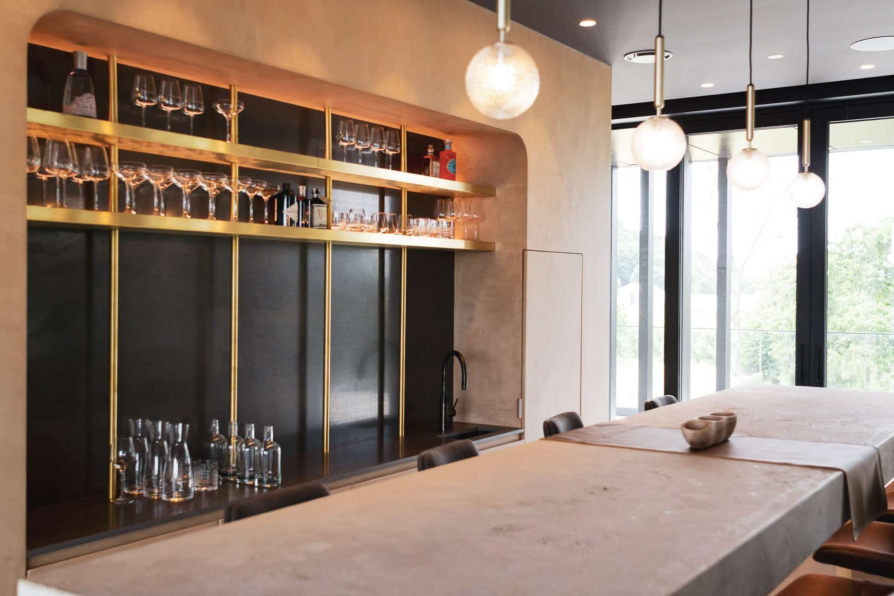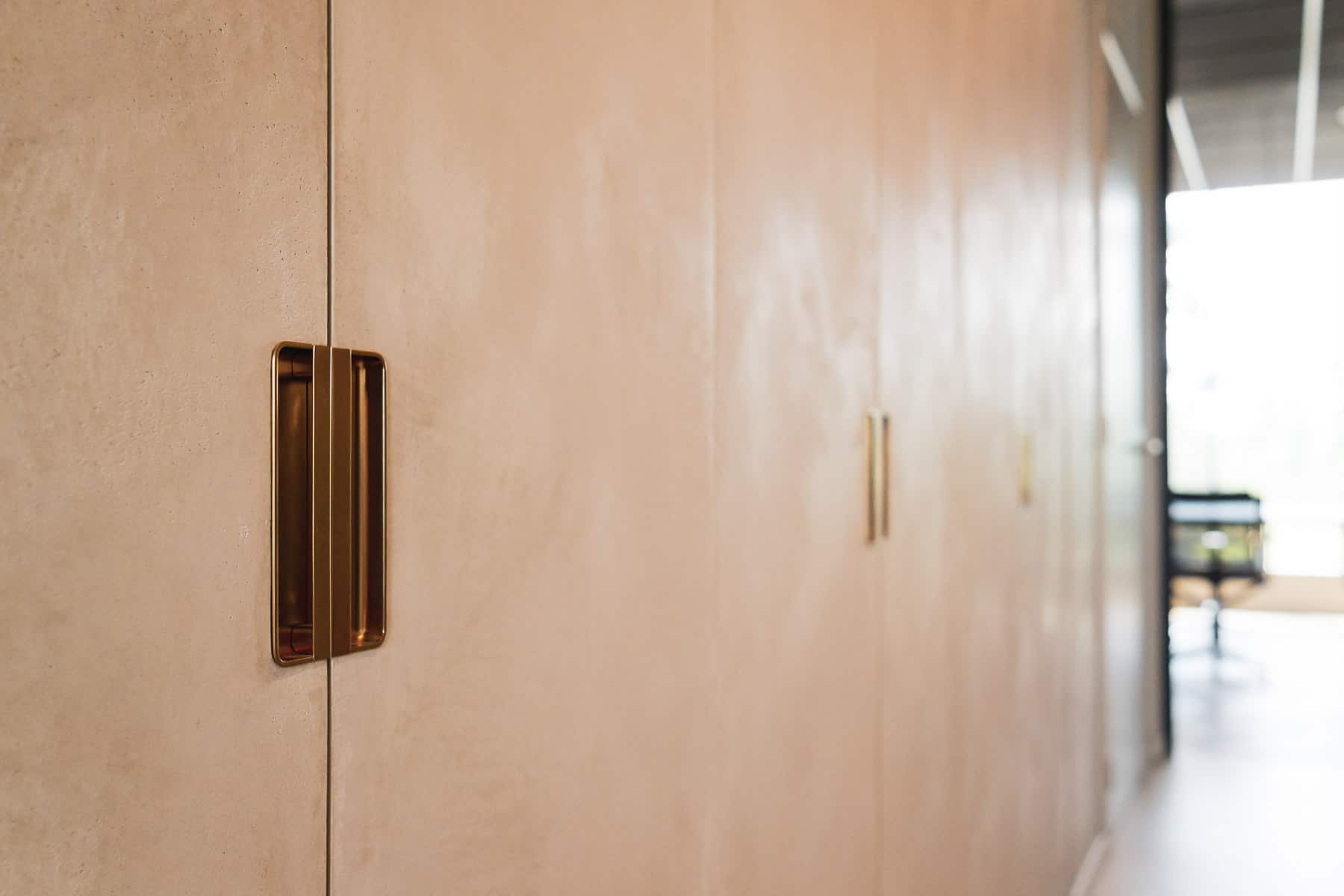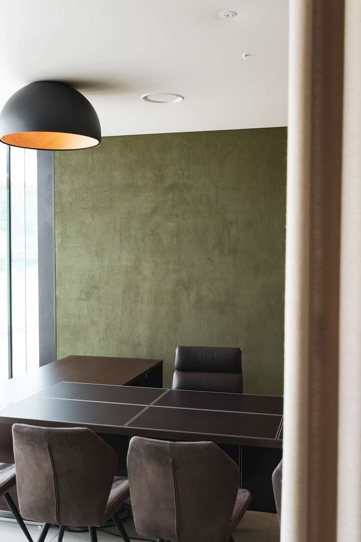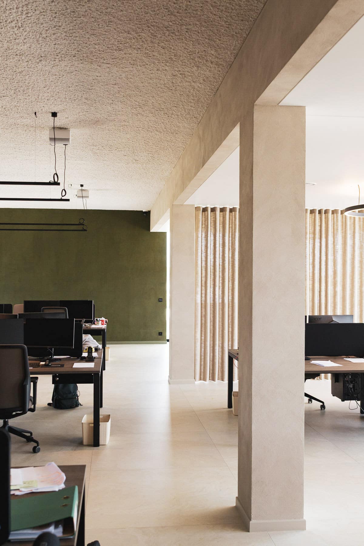 Bij studiebureau Igenia in Zottegem showcasen we enkele bijzondere decoratieve afwerkingstechnieken. Op het maatmeubilair brachten we Thalostuc Origin aan van Odilon Creations voor een sprekende look & feel. Op de groene bureauwand brachten we Thalostuc Xarraca aan, en op de palen en contour van het landschapskantoor pronkt de Thalixe techniek, eveneens van Odilon Creations. Het barmeubel op het verdiep erboven werd afgewerkt met Mortex. Het resultaat? Een karaktervol kantoor waar je met alle plezier gaat werken.