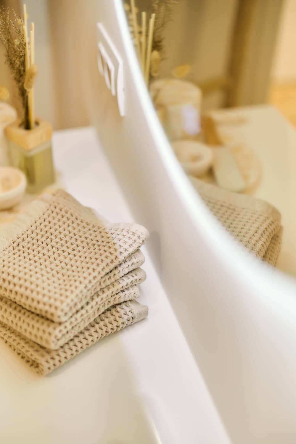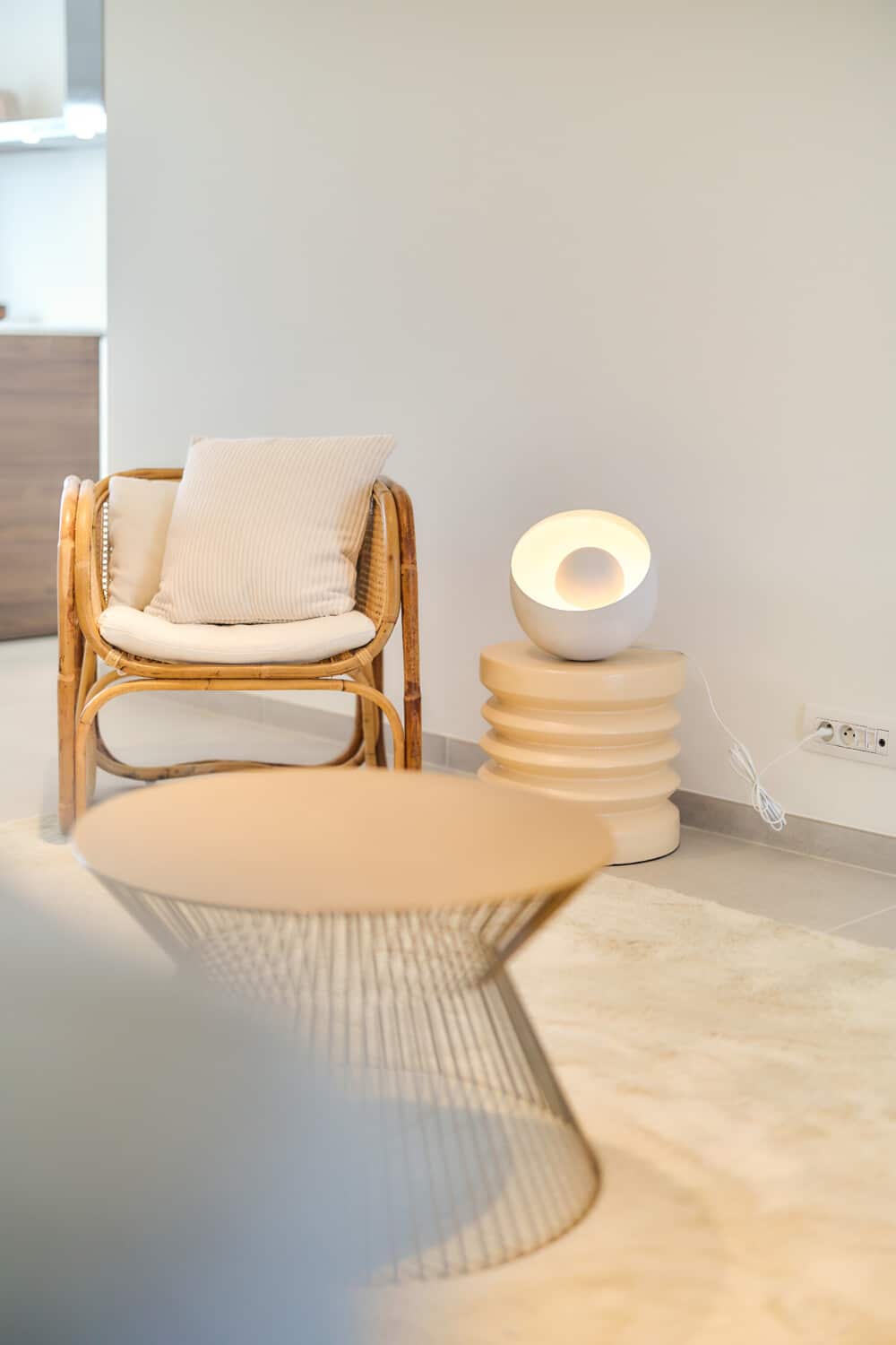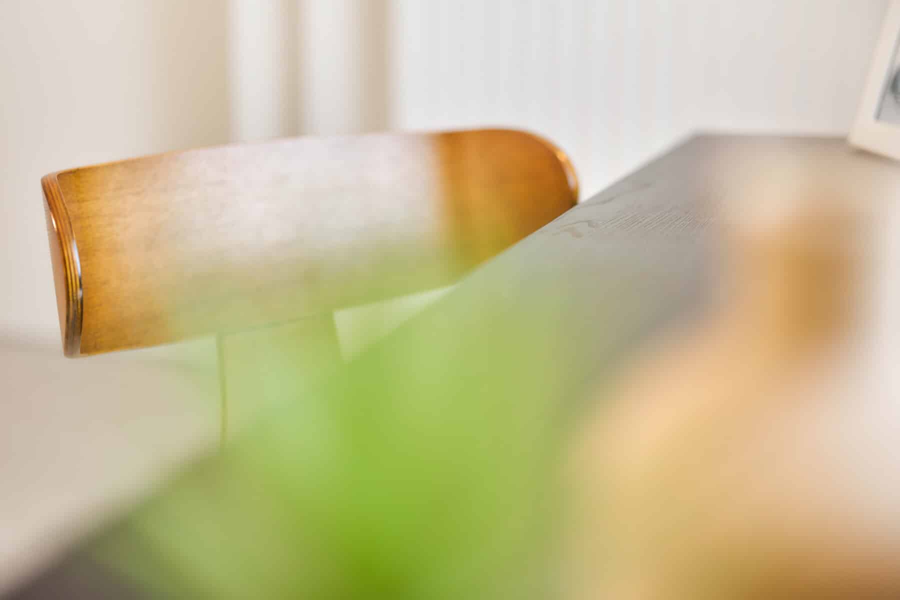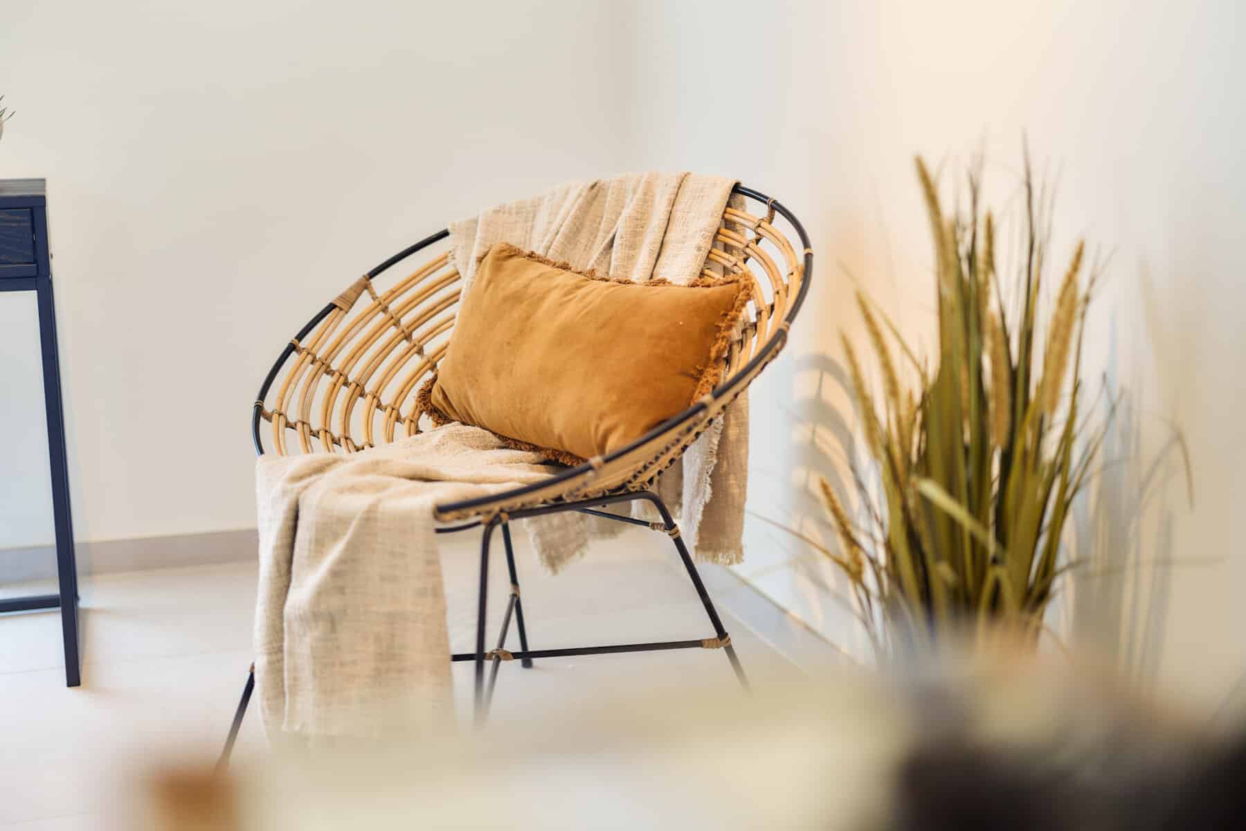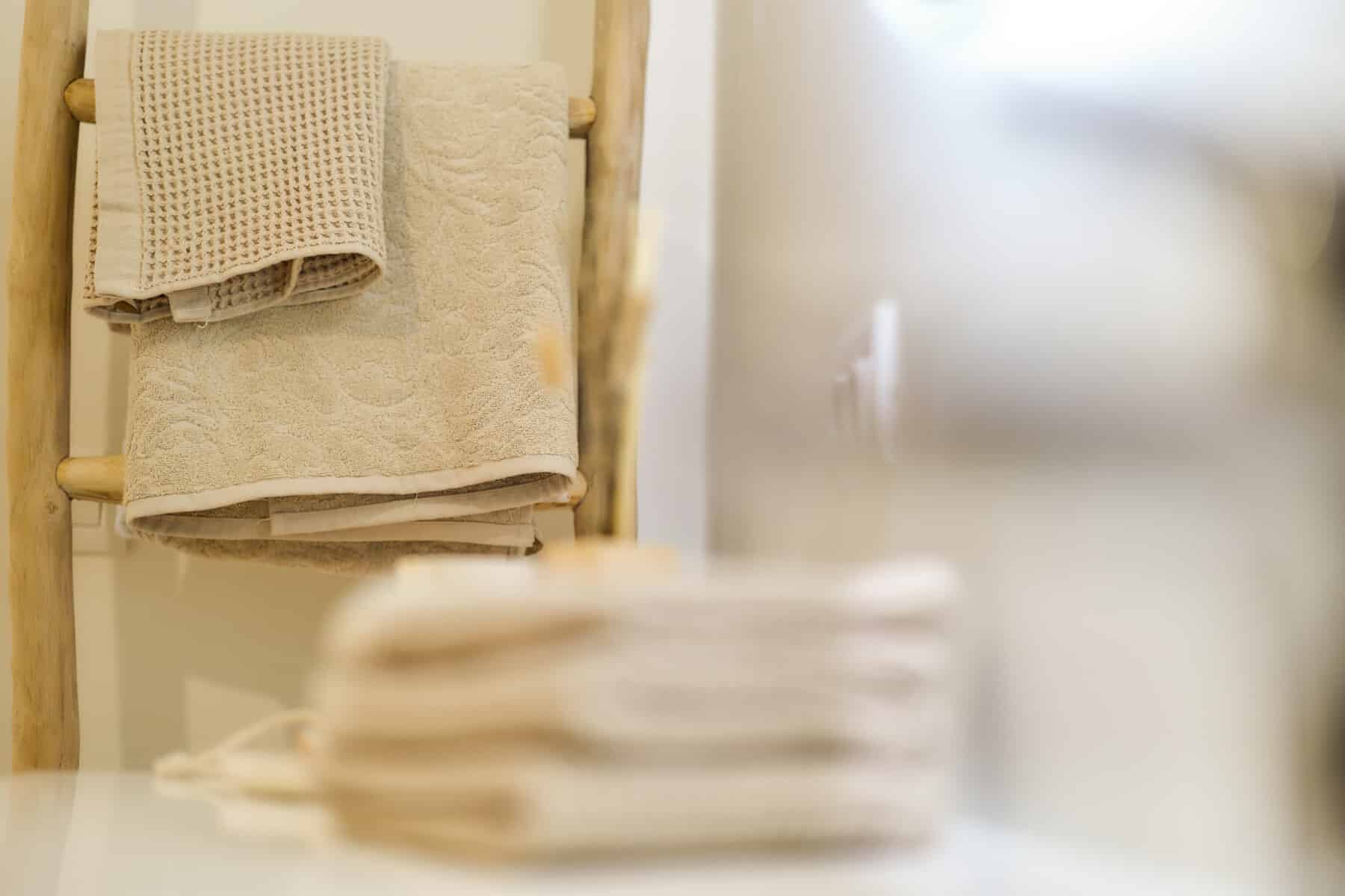 Winkelinterieur met zorgvuldig geplaatste kledingrekken en warme houten accenten, versterkt door de verfijnde schilder- en pleisterwerken van In't Wit en In't Kleur.